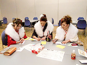 ◎平成23年・江東区成人式開催 2011年1月10日(成人の日)、ティアラこうとうにて江東区成人式が開かれ、青少年委員会も、運営のお手伝いをさせていただきました。 江東区の新成人3,493名のうち、2,371名(男性:1,205名・女性:1,166名)の方が参加されました。皆様の今後のご活躍を、委員一同お祈り申し上げます。