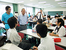 ◎第6回 江東区内 都立高校紹介 2012年8月25日(土)、都立大江戸高等学校にて、「江東区内都立高校紹介」を開催しました。 区内8校の生徒が、小中学生や保護者の皆様に、進路の参考になればと、特色ある学校生活を「生の声」で紹介する好評企画。今年で第6回目を迎えました。 550名もの参加者の方々が、発表を間近に見聞きできるよう、会場を二つに分け同時進行しました。いかがでしたでしょうか?